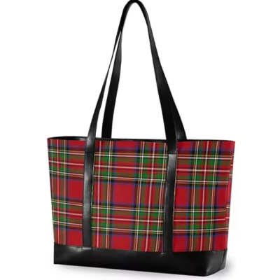 Stewart Tartan Plaid Laptop Women Perfect Gift Travel Bag Canvas Teacher Multiple Use Occasion Black Leather Handle Cotton Bag