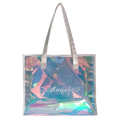 Personalized logo Jelly PVC Tote Bag luxury holographic laser Transparent Shoulder Strap Waterproof Beach Bag with PU handle