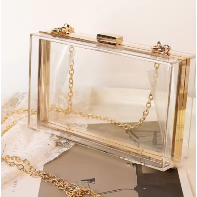 2023hot selling Summer ladies transparent boxed purse women clear acrylic metal evening clutch bag