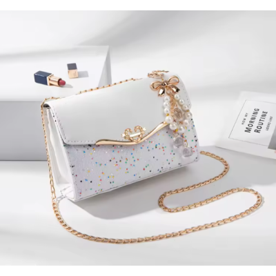 Stylish Versatile Golden Chain Strap Ladies Designer Bags Bowknot-decoration Messenger Girls Fashion Confetti Purse