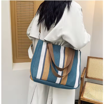 New Fashion Women's Tote Bag Ladies Shoulder Crossbody Large Capacity Canvas Stripe Tote Bag