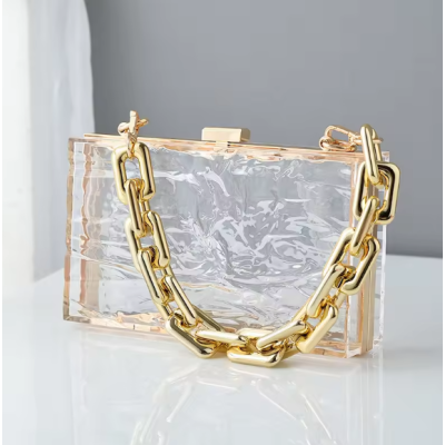 New design girls transparent evening Bag women ice crack pattern acrylic clear clutch bag