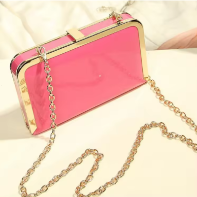 Wholesale fashion ladies Glossy pu leather clutch bag hard case metal frame
